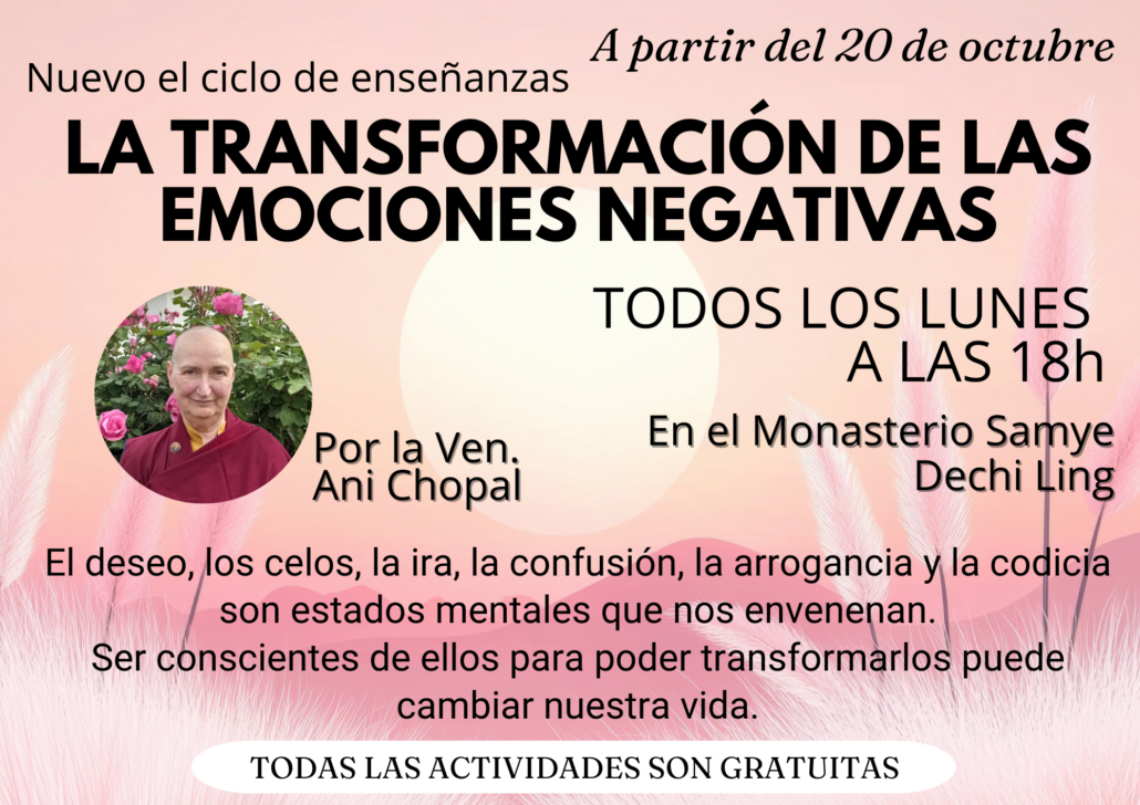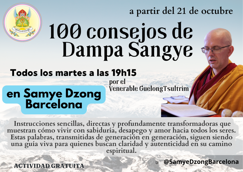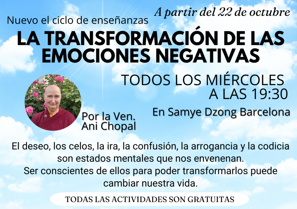 Puedes ver todas las enseñanzas en directo, así como las grabaciones, desde el canal de YouTube Samye Dzong Barcelona