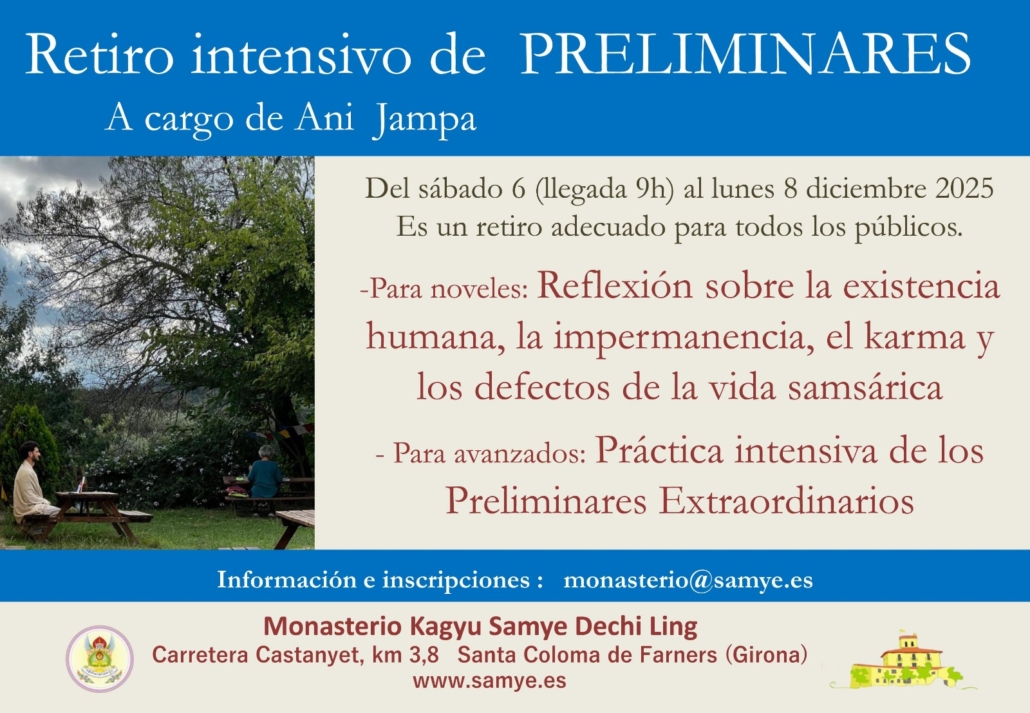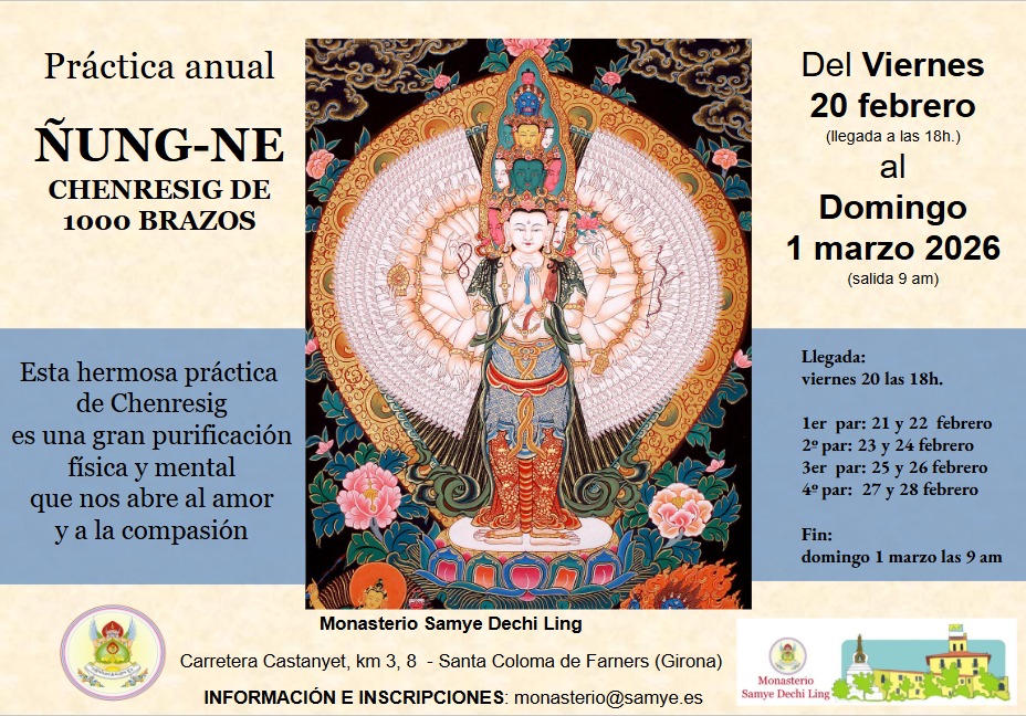 - Lunes: ciclo de enseñanzas sobre «la transformación de las emociones negativas», a cargo de la Ven. Ani Chopal.